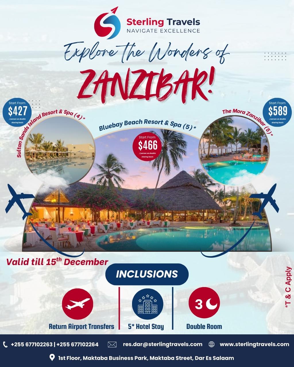 The Mora Zanzibar is a premium beachfront resort designed for travelers seeking elegance, comfort, and breathtaking island views. Located along Zanzibar’s pristine coastline, the resort features luxurious suites, an exceptional spa, and gourmet dining with a serene ambience. Guests can enjoy snorkeling, diving, sunset cruises, and water sports in crystal-clear waters. With its peaceful setting, warm hospitality, and modern amenities, The Mora Zanzibar is ideal for honeymoons, family vacations, and luxury beach holidays. Book your The Mora Zanzibar tour package to experience the perfect blend of relaxation, adventure, and tropical beauty.Price Includes